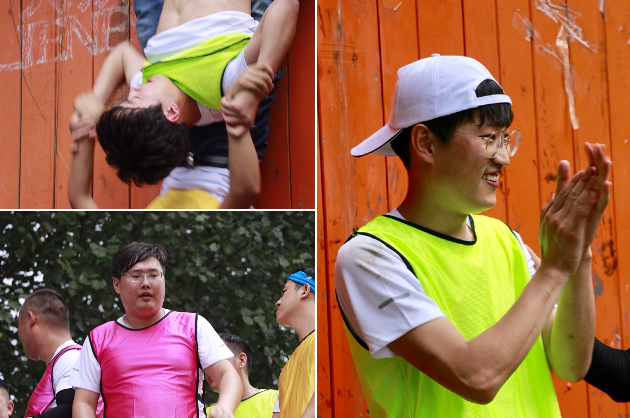 著伙伴的手腕,將他們一個(gè)個(gè)拉上高墻,其他的隊(duì)友在后面雙手伸向天空筑成人墻保護(hù)著正在攀爬的隊(duì)友。最難的是最后一個(gè)隊(duì)員要怎