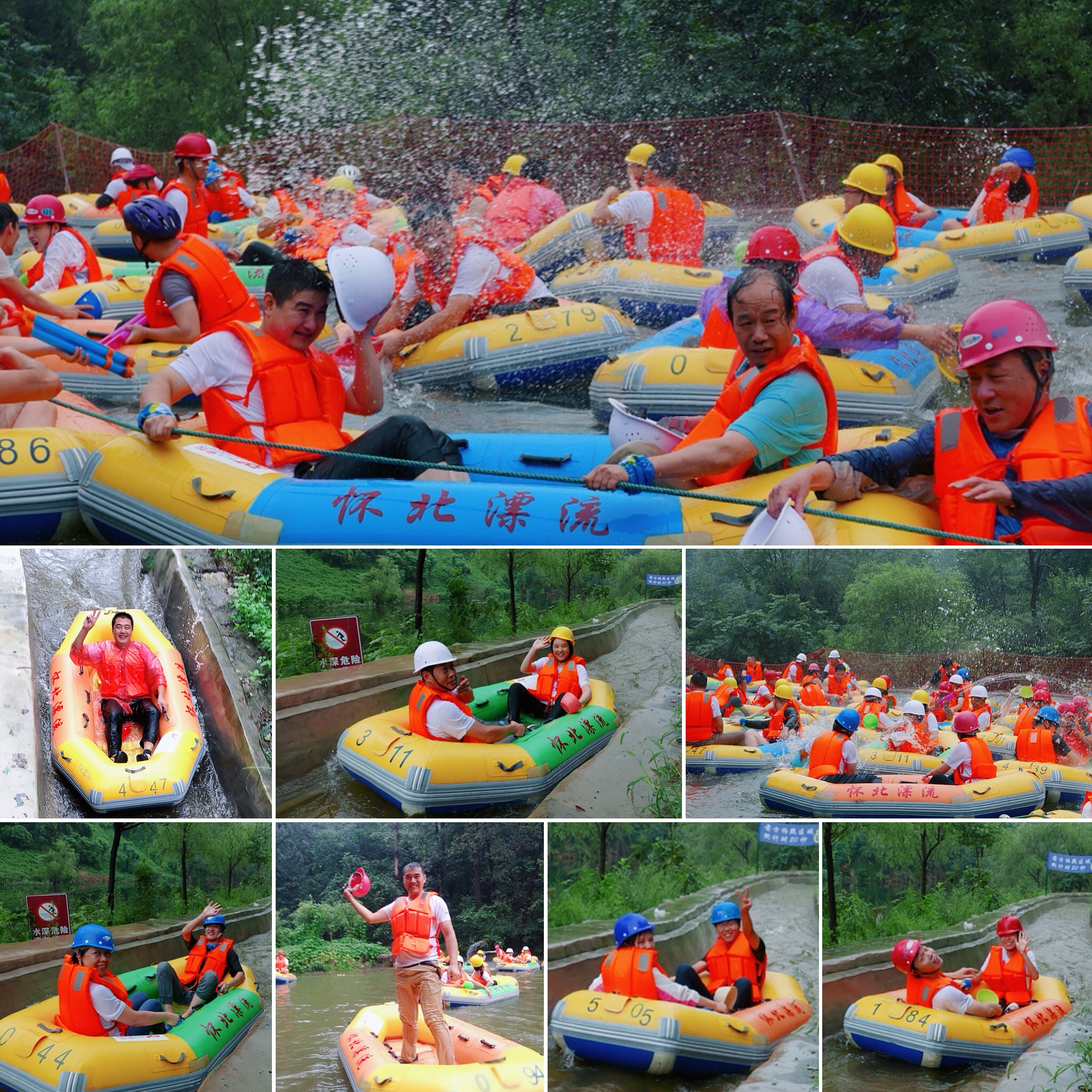 之間。這個(gè)項(xiàng)目幾乎也是全員參與,伙伴們興致高昂,勇氣可嘉。有的伙伴在漂流途中的緩沖嬉戲區(qū)打起了水仗,每個(gè)人洋溢著幸福