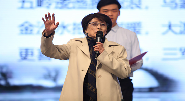 高齡的葛蘭教授親臨現場,帶領大家齊頌經典紅色詩篇——《七律˙長征》,點燃了整個會場。